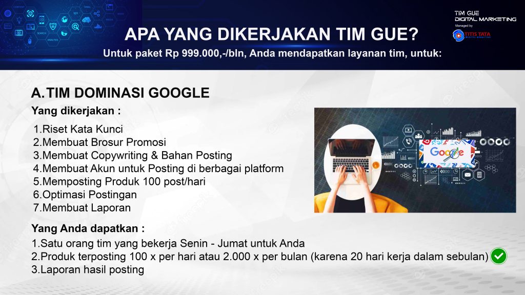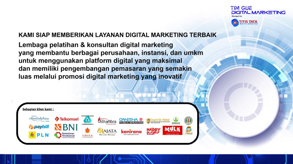 TIM GUE DIGITAL MARKETING Manajemen By Titis Tata & Talenta Virtual Video Editing dan Fotografi https://youtu.be/81tDp9R7ugE https://youtu.be/8uRJEwWOnWQ
